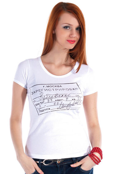 Футболка из хлопка белого цвета с шуточным принтом. Модель приталенная, с короткими рукавами. Края изделия и горловина аккуратно обработаны.