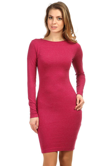 Яркое малиновое платье "чулок" из вискозной ткани с шерстью. Модель с длинными рукавами и округлой горловиной, полностью облегающее.