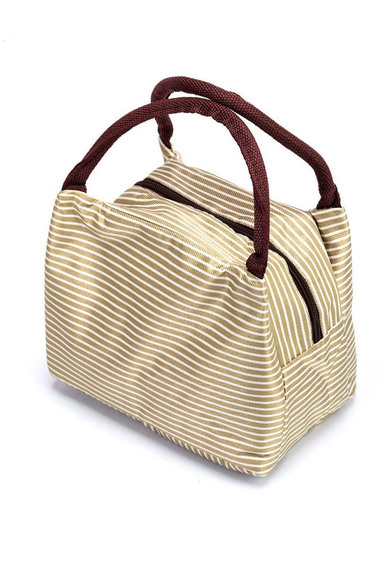 Фото товара 17042, термосумка для ланч-бокса в полоску «горячий обед» бежевая