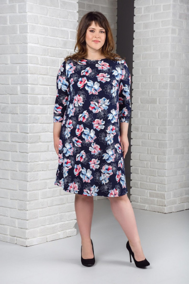 Фото товара 19618, темно-синее платье с цветами
