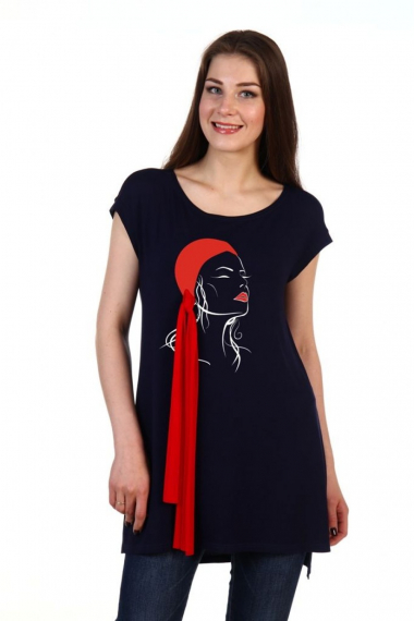 Фото товара 20581, темно-синяя туника с декором